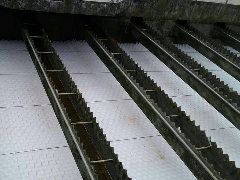 用戶通常使用pp斜管,其關鍵特征是濕周長,水力半徑小。層流形貌好,顆粒沉降無湍流干擾。若斜管長度為1米,有效負荷按3-5噸/米2時調度,V0控制在2.5-3.0毫米/秒以內,出水水質最佳。